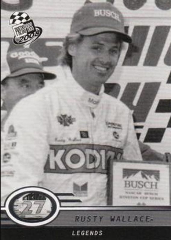 The Rusty Wallace 2008 Press Pass #56 Base card is 1 of 4 Rusty Wallace's card variations in the 2008 Press Pass set being tracked by Sports Card Investor, including Blue, Gold, and Platinum /100.
