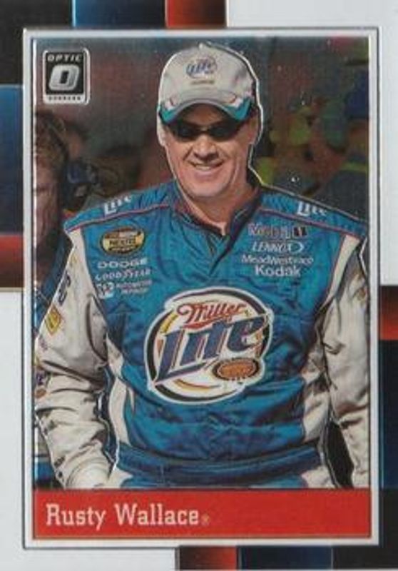 The Rusty Wallace 2021 Donruss NASCAR #72 Optic card is 1 of 28 Rusty Wallace's card variations in the 2021 Donruss NASCAR set being tracked by Sports Card Investor, including Classics, Classics Checkers, Classics Retail, Optic Carolina Blue Wave, and Optic Holo.