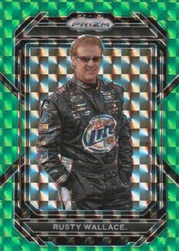 The Rusty Wallace 2023 Prizm NASCAR #4 Reactive Green /249 card is 1 of 55 Rusty Wallace's card variations in the 2023 Prizm NASCAR set being tracked by Sports Card Investor, including Base, Hyper Blue & Carolina Blue, Hyper Purple & Yellow, Reactive Orange, and Red.