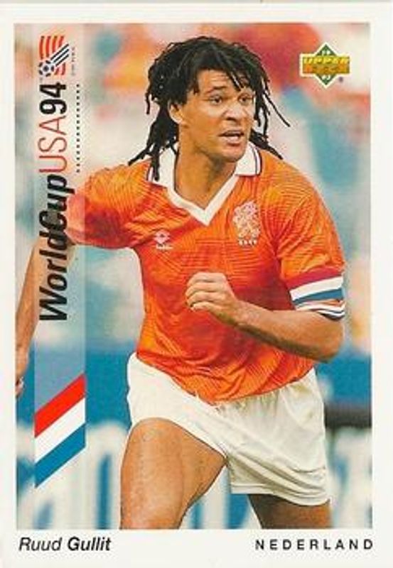 The Ruud Gullit 1993 Upper Deck World Cup Preview (English/German) #76 Base card is 1 of 3 Ruud Gullit's card variations in the 1993 Upper Deck World Cup Preview (English/German) set being tracked by Sports Card Investor, including Base, and World Star Holograms.