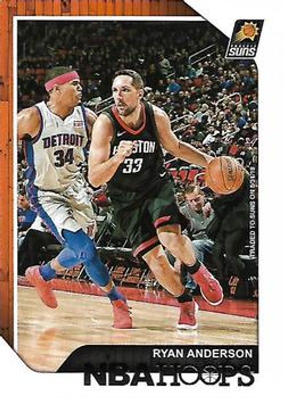 The Ryan Anderson 2018 Hoops #141 Base card is 1 of 18 Ryan Anderson's card variations in the 2018 Hoops set being tracked by Sports Card Investor, including Red Backs, Premium Box Set /199, Blue, Purple, and Teal Explosion.