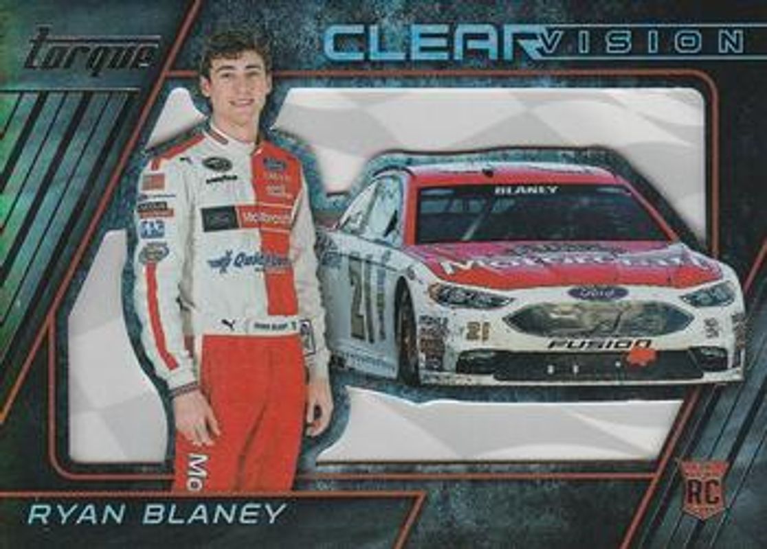 The Ryan Blaney 2016 Torque NASCAR #18 Clear Vision Rookie card is 1 of 55 Ryan Blaney's card variations in the 2016 Torque NASCAR set being tracked by Sports Card Investor, including #63 Base, #19 Base, #63 Gold, #19 Gold, and #19 Blue /125.