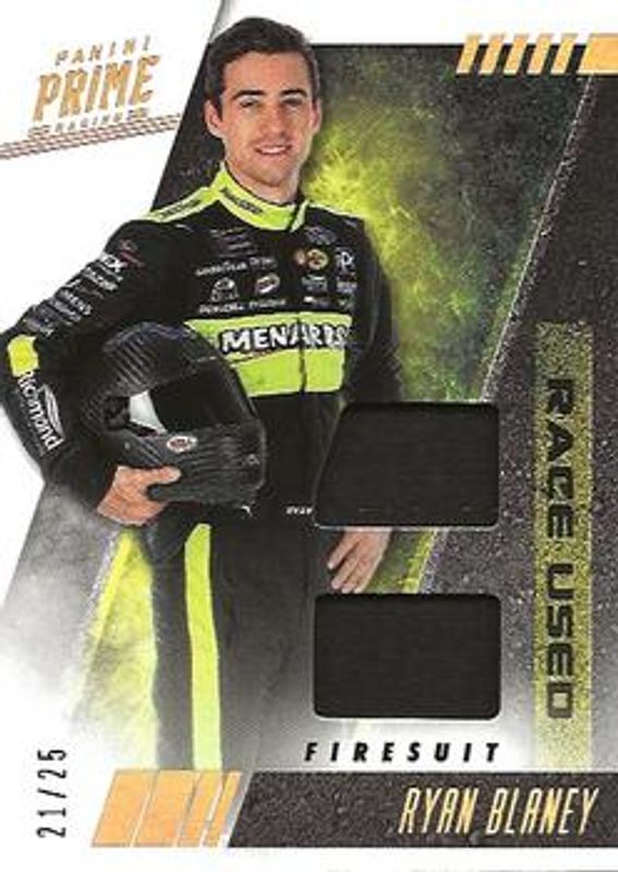 Ryan Blaney 2019 Prime NASCAR #RUD-RB Race Used Duals Firesuits Holo - Gold /25 RAW Price Guide