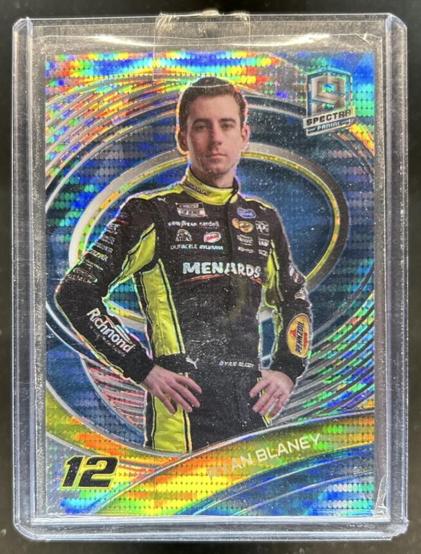 The Ryan Blaney 2021 Chronicles NASCAR #28 Spectra - Celestial Blue /99 card is 1 of 120 Ryan Blaney's card variations in the 2021 Chronicles NASCAR set being tracked by Sports Card Investor, including Base, Blue /199, Red /99, Purple /25, and Gold /10.
