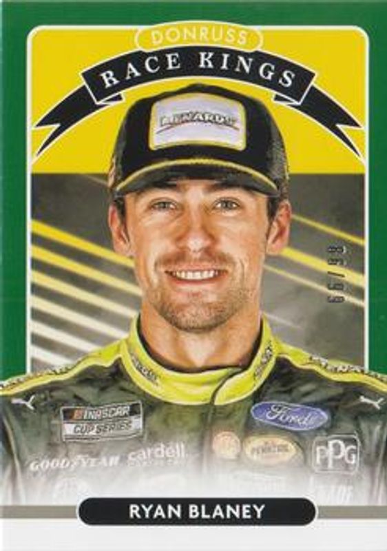 The Ryan Blaney 2021 Donruss NASCAR #12 Green /99 card is 1 of 113 Ryan Blaney's card variations in the 2021 Donruss NASCAR set being tracked by Sports Card Investor, including #74 Base, #12 Base, #40 Base, #197 Base, and #197 Carolina Blue.