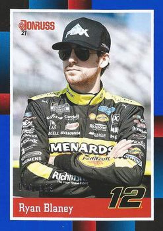 The Ryan Blaney 2021 Donruss NASCAR #197 Navy Blue /199 card is 1 of 113 Ryan Blaney's card variations in the 2021 Donruss NASCAR set being tracked by Sports Card Investor, including #74 Base, #12 Base, #40 Base, #197 Base, and #197 Carolina Blue.