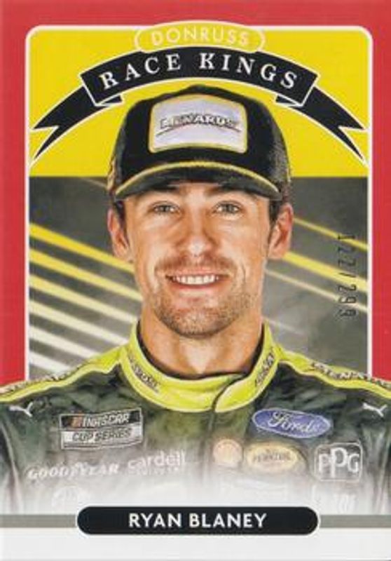 The Ryan Blaney 2021 Donruss NASCAR #12 Red /299 card is 1 of 113 Ryan Blaney's card variations in the 2021 Donruss NASCAR set being tracked by Sports Card Investor, including #74 Base, #12 Base, #40 Base, #197 Base, and #197 Carolina Blue.