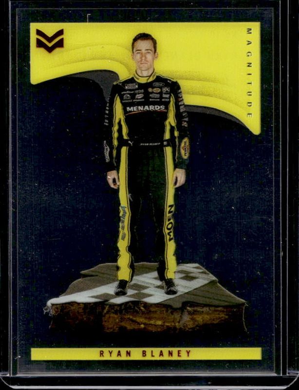 The Ryan Blaney 2022 Chronicles NASCAR #18 Magnitude Red /100 card is 1 of 124 Ryan Blaney's card variations in the 2022 Chronicles NASCAR set being tracked by Sports Card Investor, including Absolute, Chronicles Swatches, Clearly Donruss, Clear Vision, and Crown Royale Silhouette Signatures.