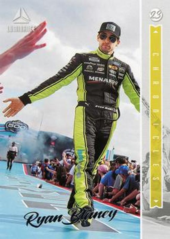 The Ryan Blaney 2023 Chronicles NASCAR #8 Luminance card is 1 of 116 Ryan Blaney's card variations in the 2023 Chronicles NASCAR set being tracked by Sports Card Investor, including Chronicles Swatches, Clearly Donruss, Clear Vision, Elite Materials, and Luminance Autographs.