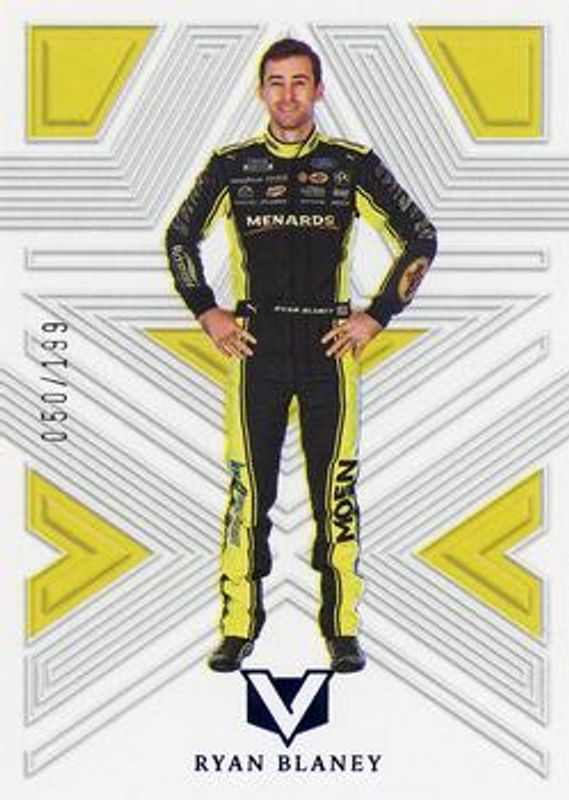The Ryan Blaney 2023 Chronicles NASCAR #20 Vertex - Blue /199 card is 1 of 116 Ryan Blaney's card variations in the 2023 Chronicles NASCAR set being tracked by Sports Card Investor, including Chronicles Swatches, Clearly Donruss, Clear Vision, Elite Materials, and Luminance.