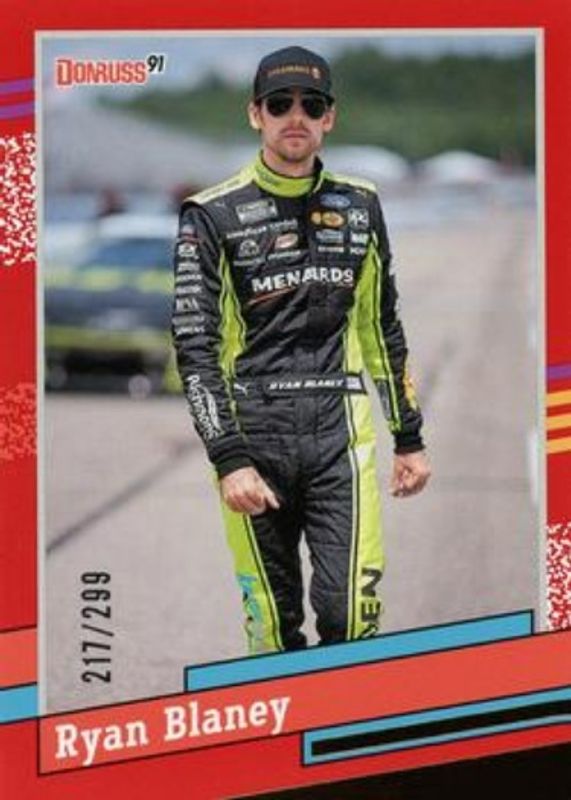 The Ryan Blaney 2024 Donruss NASCAR #112 Red /299 card is 1 of 202 Ryan Blaney's card variations in the 2024 Donruss NASCAR set being tracked by Sports Card Investor, including #90 Base, #112 Base, #172 Base, #187 Base, and #61a Base.