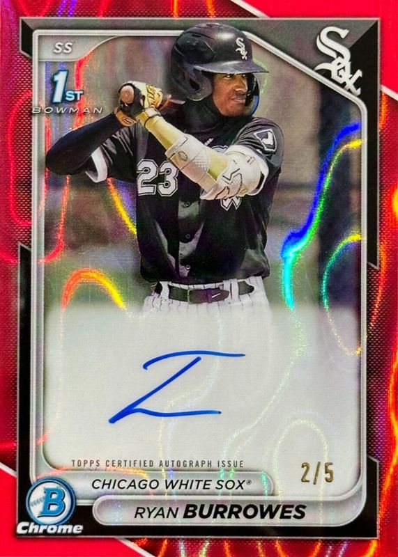 Best Prices Available For Sale of Ryan Burrowes 2024 Bowman #CPA-RBU Chrome Prospect Auto - Red Lava Refractor /5 (1st)