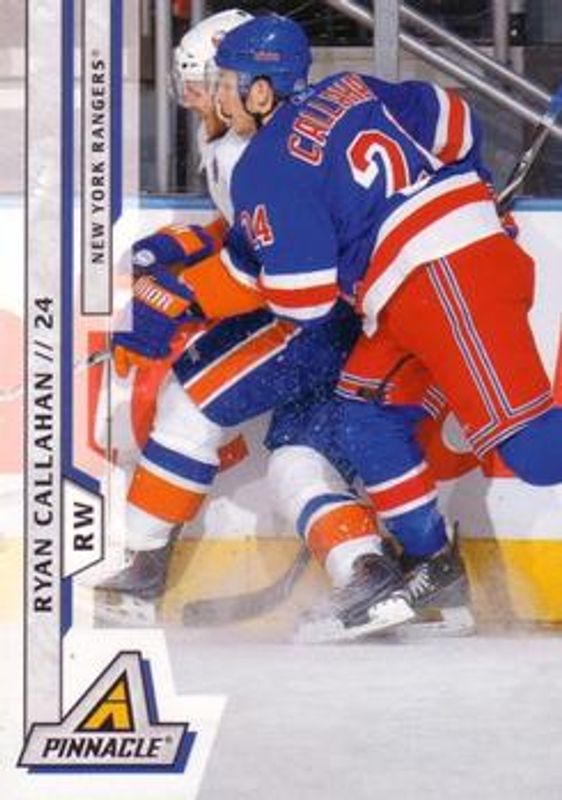 The Ryan Callahan 2010 Pinnacle #69 Base /299 card is 1 of 6 Ryan Callahan's card variations in the 2010 Pinnacle set being tracked by Sports Card Investor, including Artists Proofs, Rink Collection, Threads /499, Threads Prime /25, and Threads Patches /10.
