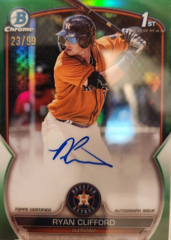 Ryan Clifford 2023 Bowman Chrome 1st Bowman /99 Green Auto - Astros