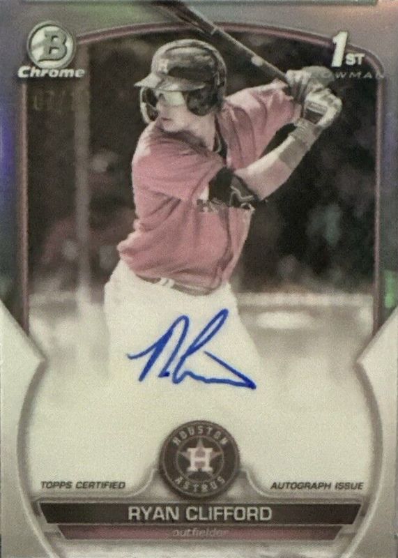 Auctions Ending Soon for Ryan Clifford 2023 Bowman #CPA-RC Chrome Prospect Auto - Pearl Refractor /10 (1st) RAW