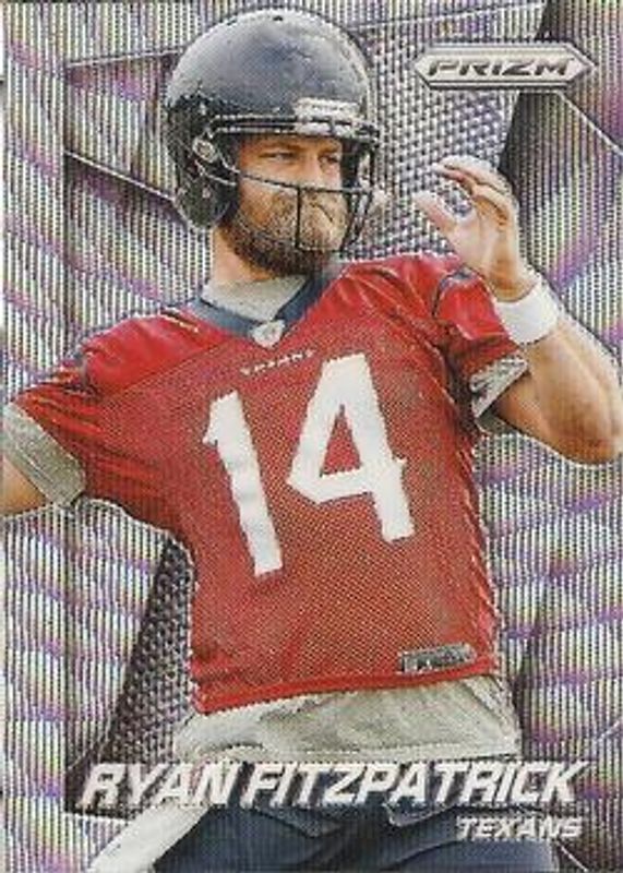 The Ryan Fitzpatrick 2014 Prizm #135 Light Blue Wave /99 card is 1 of 19 Ryan Fitzpatrick's card variations in the 2014 Prizm set being tracked by Sports Card Investor, including Base, Blue, Camo, Green, and Neon Green & Yellow.