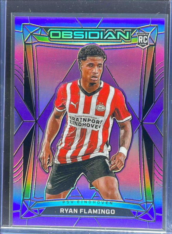 The Ryan Flamingo 2024 Obsidian #18 Electric Etch Purple Flood /30 card is 1 of 17 Ryan Flamingo's card variations in the 2024 Obsidian set being tracked by Sports Card Investor, including Base /145, Electric Etch Red Pulsar /44, Electric Etch Orange /40, Electric Etch Imperial Jade /26, and Electric Etch Blue /20.