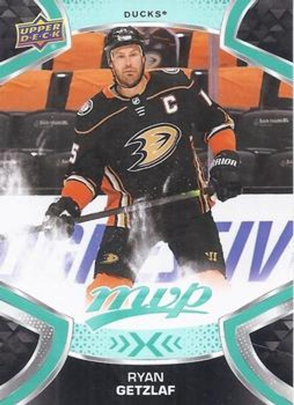 The Ryan Getzlaf 2021 Upper Deck MVP #15 Base card is 1 of 12 Ryan Getzlaf's card variations in the 2021 Upper Deck MVP set being tracked by Sports Card Investor, including Blue, Gold Script, Ice Battles, Silver Script, and Super Script /25.