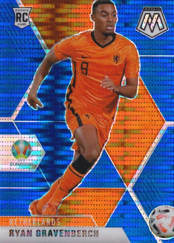 2020-21 Mosaic UEFA Euro #148 Ryan Gravenberch RC BLUE PULSAR Prizm