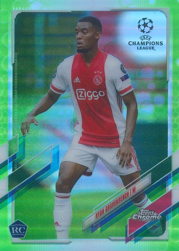 Ryan Gravenberch 2020 Topps Chrome UEFA Champions League #98 Neon Green Bubbles Refractor Rookie RAW Price Guide