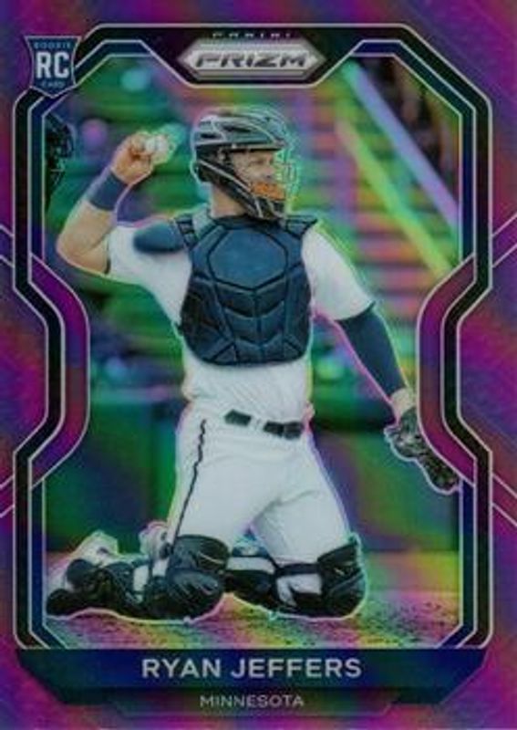 The Ryan Jeffers 2021 Prizm #30 Purple Rookie card is 1 of 70 Ryan Jeffers' card variations in the 2021 Prizm set being tracked by Sports Card Investor, including Base, Blue, Blue Velocity, Carolina Blue, and Cosmic Haze.
