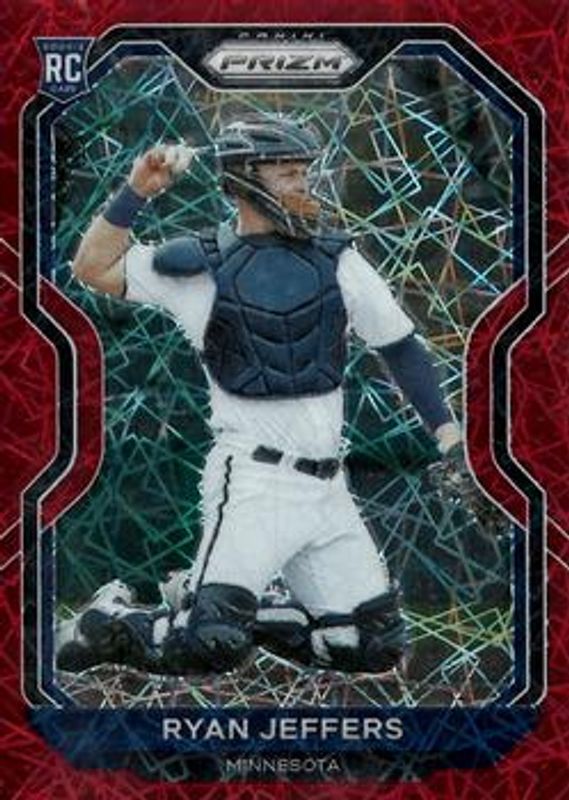 The Ryan Jeffers 2021 Prizm #30 Red Velocity Rookie card is 1 of 70 Ryan Jeffers' card variations in the 2021 Prizm set being tracked by Sports Card Investor, including Base, Blue, Blue Velocity, Carolina Blue, and Cosmic Haze.