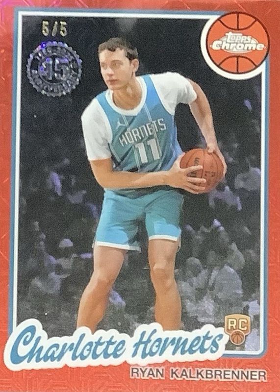 The Ryan Kalkbrenner 2025 Topps Silver Pack #TC-RK 1980-81 Topps Chrome - Red Refractor /5 Rookie card in Raw condition has not changed in price in the last 30 days and was last sold for $209.50 .