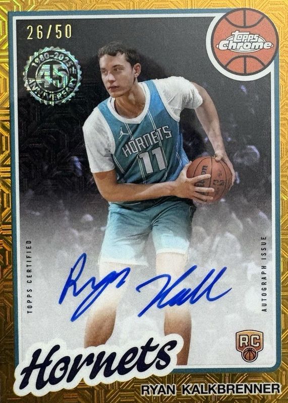 2025-26 Topps-Ryan Kalkbrenner ON CARD AUTO #80CR2-RK GOLD /50 Mojo (RC) Hornets