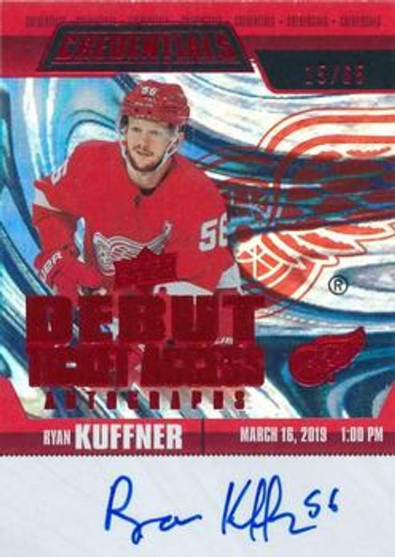 Ryan Kuffner 2019 Upper Deck Credentials #RTAA-KU Debut Ticket Access Autographs Red /65 Rookie RAW