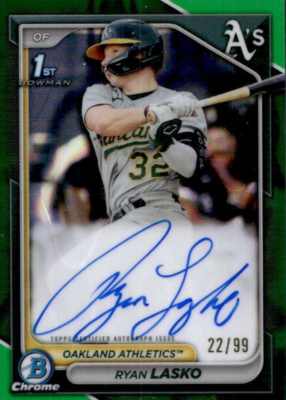 2024 Bowman Ryan Lasko Chrome Auto Green Lava 1st #67/99 Athletics
