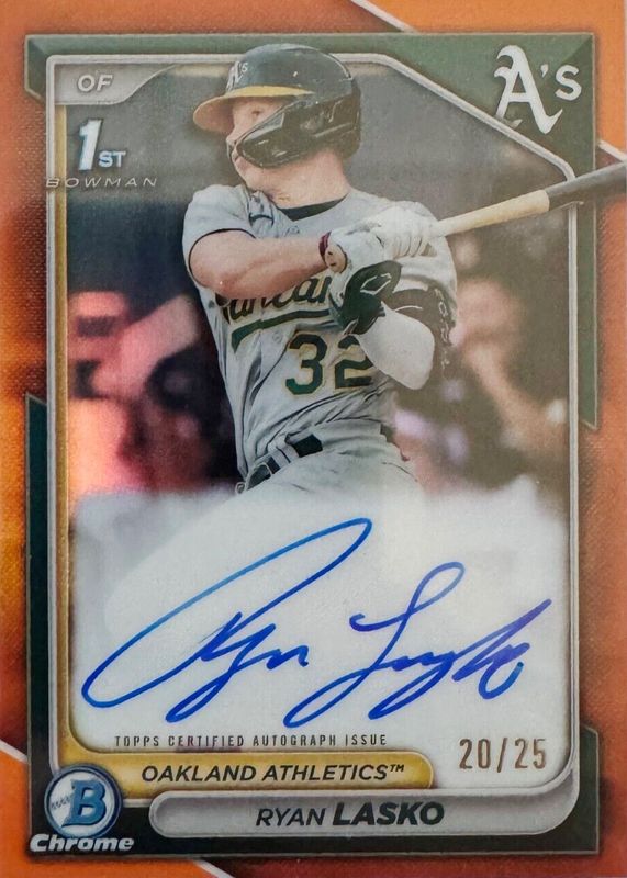 2024 Bowman Chrome 1st Ryan Lasko Orange Refractor /25 Auto #CPARLAS
