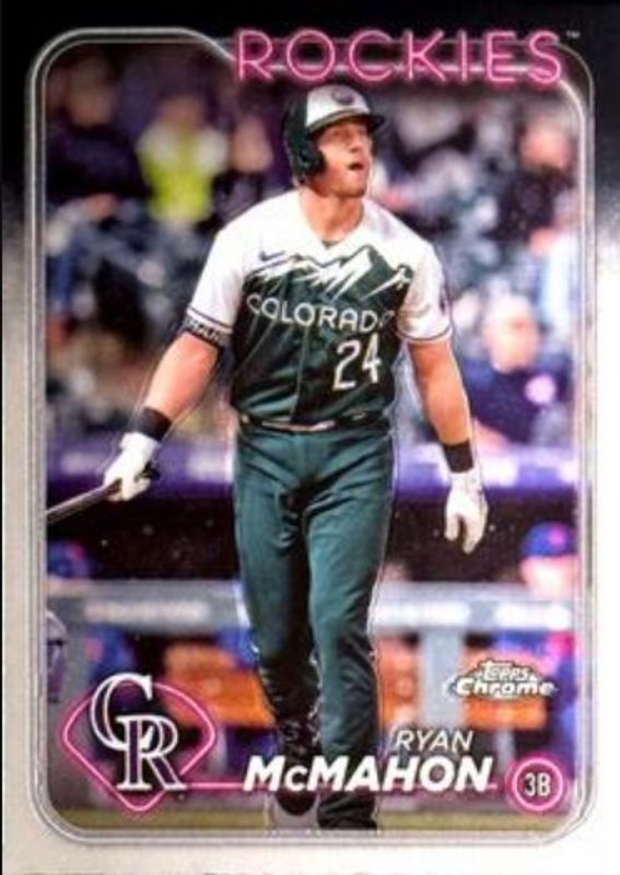 The Ryan McMahon 2024 Topps Chrome #299 Base card is 1 of 17 Ryan McMahon's card variations in the 2024 Topps Chrome set being tracked by Sports Card Investor, including Pink Refractor, X Fractor, Aqua Lava Refractor /199, Aqua RayWave Refractor /199, and Aqua Refractor /199.