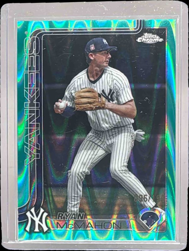The Ryan McMahon 2025 Topps Chrome Update #USC66 Aqua RayWave Refractor /199 card is 1 of 73 Ryan McMahon's card variations in the 2025 Topps Chrome Update set being tracked by Sports Card Investor, including Base, Geometric Refractor, Negative Refractor, Prism Refractor, and RayWave Refractor.