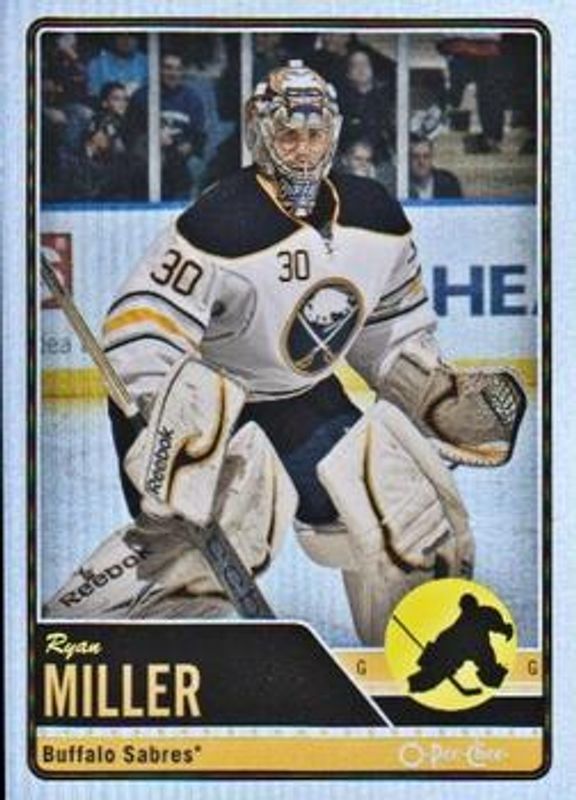 The Ryan Miller 2012 O-Pee-Chee #303 Rainbow card is 1 of 9 Ryan Miller's card variations in the 2012 O-Pee-Chee set being tracked by Sports Card Investor, including Base, Retro, Retro Blank Back, Black Rainbow /100, and All Stars.