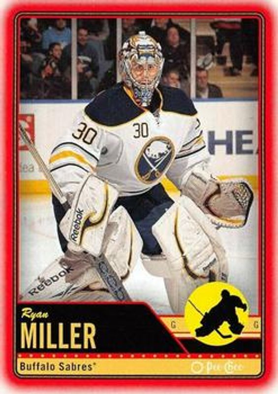 The Ryan Miller 2012 O-Pee-Chee #303 Wrapper Redemption Red card is 1 of 9 Ryan Miller's card variations in the 2012 O-Pee-Chee set being tracked by Sports Card Investor, including Base, Rainbow, Retro, Retro Blank Back, and Black Rainbow /100.