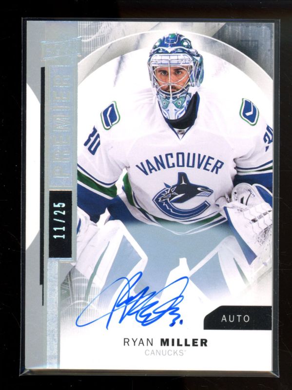 The Ryan Miller 2015 Upper Deck Premier #37 Silver Spectrum Autographs /25 card is 1 of 9 Ryan Miller's card variations in the 2015 Upper Deck Premier set being tracked by Sports Card Investor, including Base /375, Jersey /199, Prime Materials /25, Brand Logo Patch /6, and Tag /3.