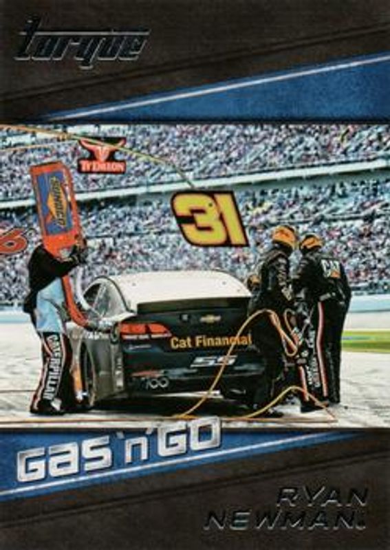 The Ryan Newman 2016 Torque NASCAR #GG3 Gas N Go card is 1 of 76 Ryan Newman's card variations in the 2016 Torque NASCAR set being tracked by Sports Card Investor, including Base, Gold, Blue /125, Red /99, and Artist Proof /50.