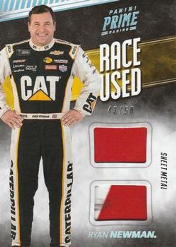 The Ryan Newman 2018 Prime NASCAR #RUD-RN Race Used Duals Sheet Metal /50 card is 1 of 96 Ryan Newman's card variations in the 2018 Prime NASCAR set being tracked by Sports Card Investor, including #16 Base /50, #49 Base /50, #82 Base /50, #82 Holo Gold /25, and #16 Holo Gold /25.