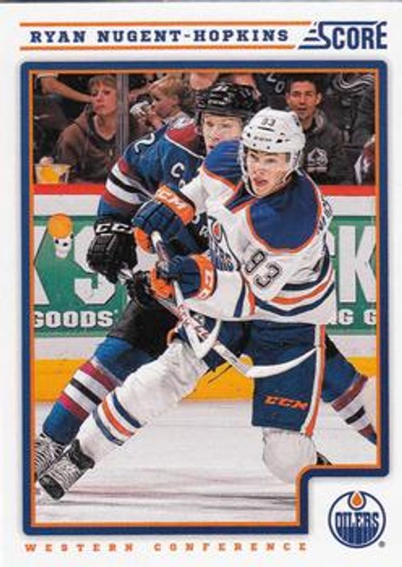 The Ryan Nugent-Hopkins 2012 Score #191 Base card is 1 of 8 Ryan Nugent-Hopkins' card variations in the 2012 Score set being tracked by Sports Card Investor, including #1 Base, #191 Black Ice, #1 Black Ice, #1 Gold Rush, and #191 Gold Rush.