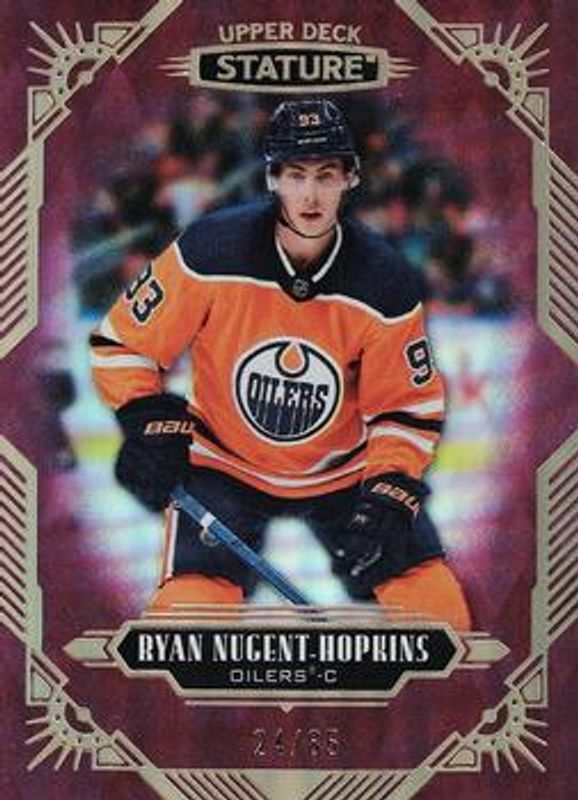 The Ryan Nugent-Hopkins 2020 Upper Deck Stature #42 Red /85 card is 1 of 8 Ryan Nugent-Hopkins' card variations in the 2020 Upper Deck Stature set being tracked by Sports Card Investor, including Base /399, Green /175, Portrait /99, Blue /45, and Portrait Red /25.