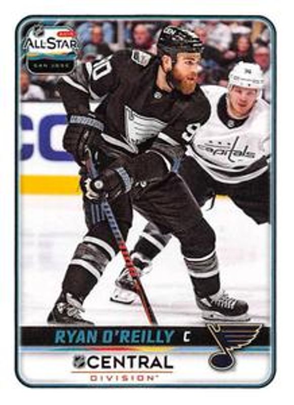 The Ryan O'Reilly 2019 Topps Stickers #554 Base card is 1 of 7 Ryan O'Reilly's card variations in the 2019 Topps Stickers set being tracked by Sports Card Investor, including #409 Base, #411 Base, #423 Base, #600 Base, and #607 Base.