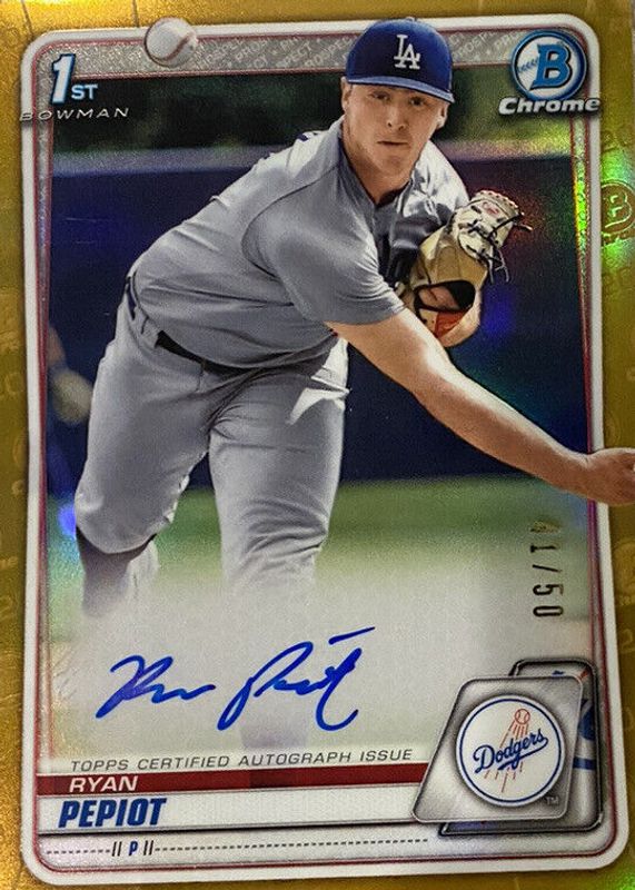 2020 Bowman Chrome Gold Refractor Ryan Pepiot Dodgers RC Rookie AUTO 35/50