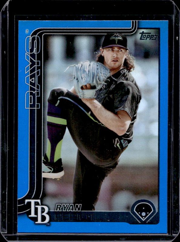 The Ryan Pepiot 2025 Topps #179 Blue Rainbow /150 card is 1 of 62 Ryan Pepiot's card variations in the 2025 Topps set being tracked by Sports Card Investor, including Base, Aqua Holo Foil, Diamante Foil, Holo Foil, and Pink Diamante Foil.