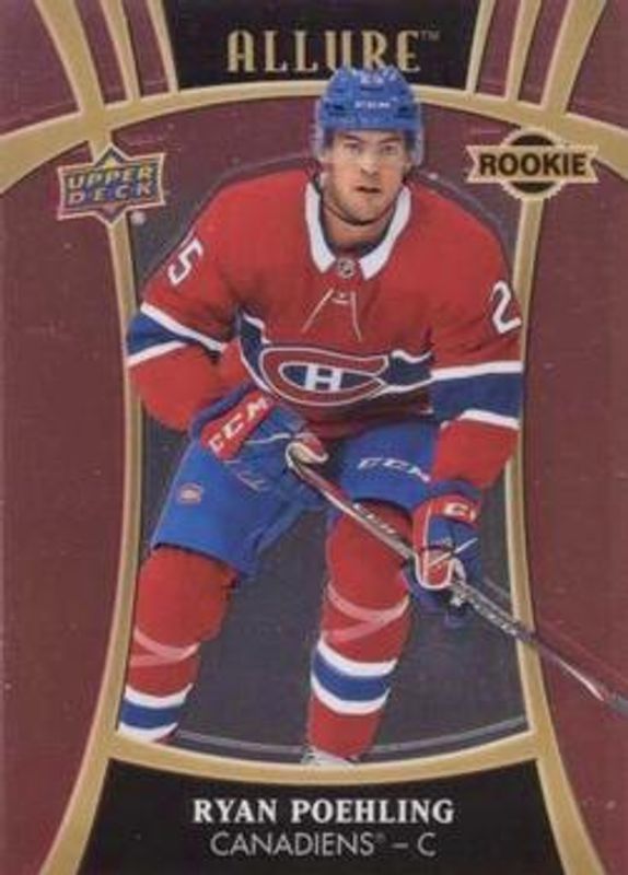 The Ryan Poehling 2019 Upper Deck Allure #104 Pink Diamond Rookie card is 1 of 44 Ryan Poehling's card variations in the 2019 Upper Deck Allure set being tracked by Sports Card Investor, including #104 Base, #86 Base, #86 Pewter, #86 Red Rainbow, and #86 White Rainbow.