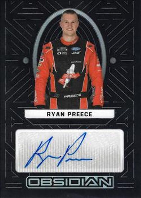 The Ryan Preece 2023 Chronicles NASCAR #RP Obsidian Signatures card is 1 of 93 Ryan Preece's card variations in the 2023 Chronicles NASCAR set being tracked by Sports Card Investor, including Clearly Donruss, Clear Vision, Luminance, Luminance Autographs, and Magnitude.