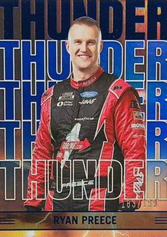 The Ryan Preece 2023 Chronicles NASCAR #9 Thunder - Blue /199 card is 1 of 93 Ryan Preece's card variations in the 2023 Chronicles NASCAR set being tracked by Sports Card Investor, including Clearly Donruss, Clear Vision, Luminance, Luminance Autographs, and Magnitude.