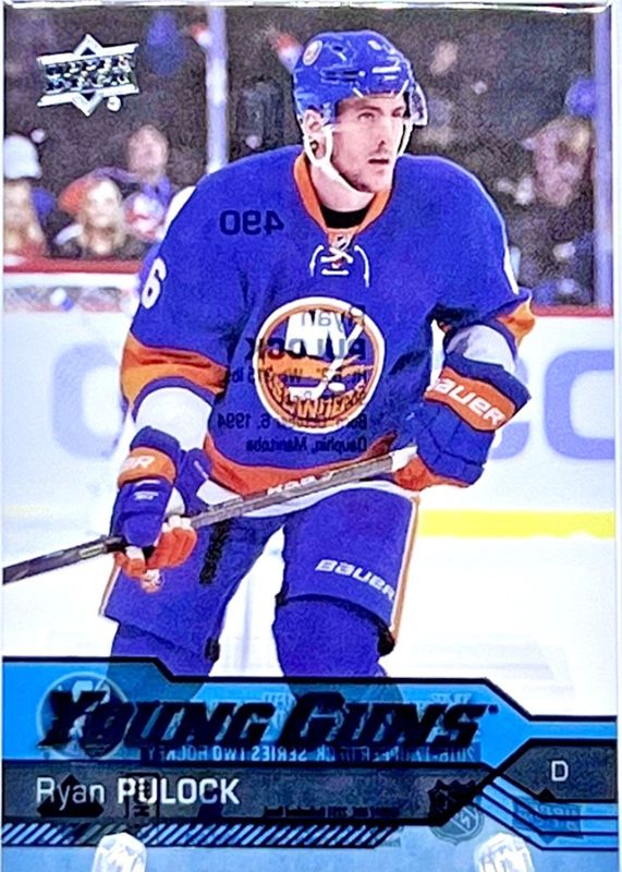This card is 1 of 15 Ryan Pulock's card variations in the 2016 Upper Deck set being tracked by Sports Card Investor, including Young Guns Base, Young Guns - Gold Rainbow Foil, Young Guns - Jumbo, Young Guns - Silver Foil, and Young Guns - UD Exclusives /100.