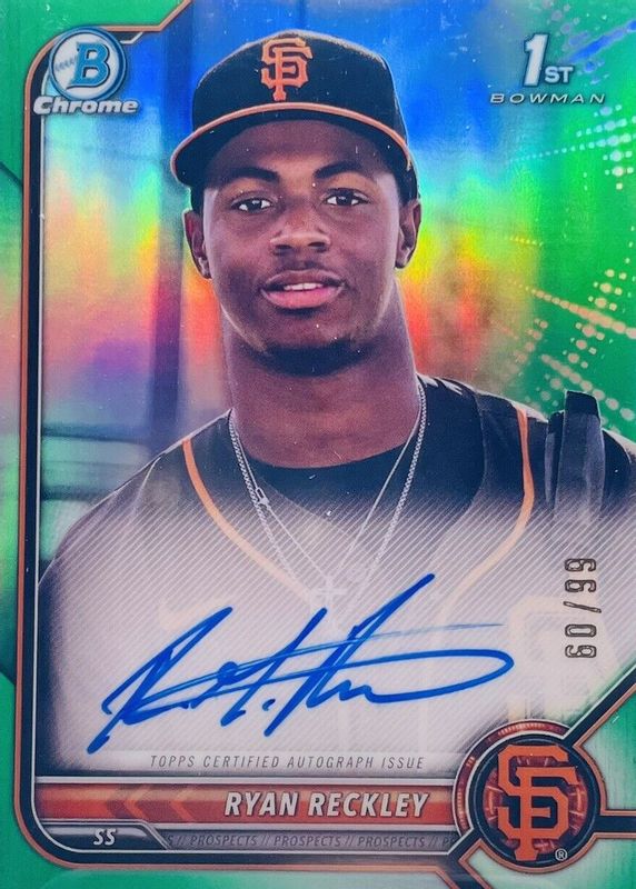 2022 Bowman Chrome Ryan Reckley 1st Prospect Green Refractor Auto #49/99 Giants