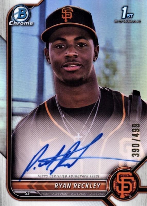 2022 Bowman Chrome Ryan Reckley Auto Refractor 1st 007/499 Giants Autograph