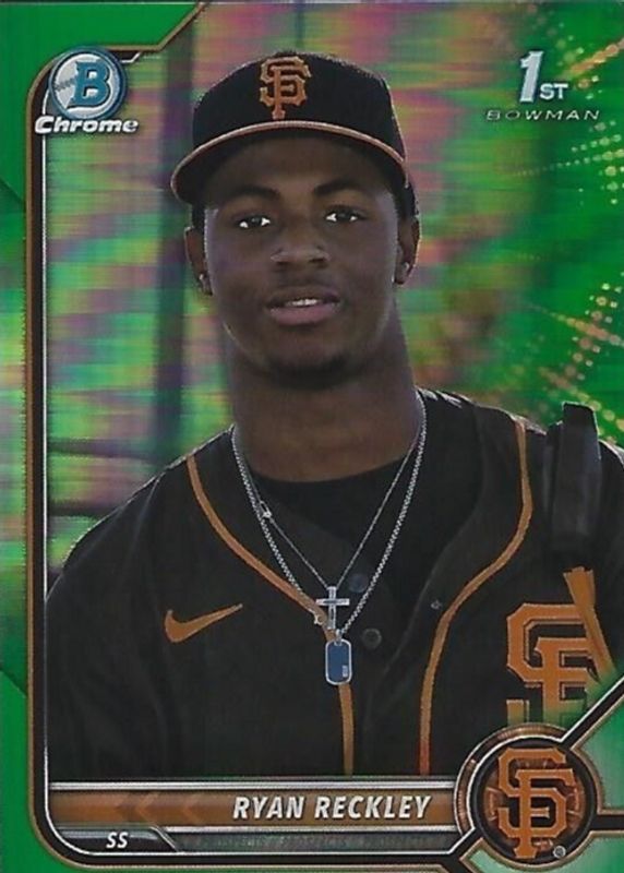2022 BOWMAN CHROME GREEN REFRACTOR 1ST PROSPECT BCP-163 GIANTS RYAN RECKLEY /99
